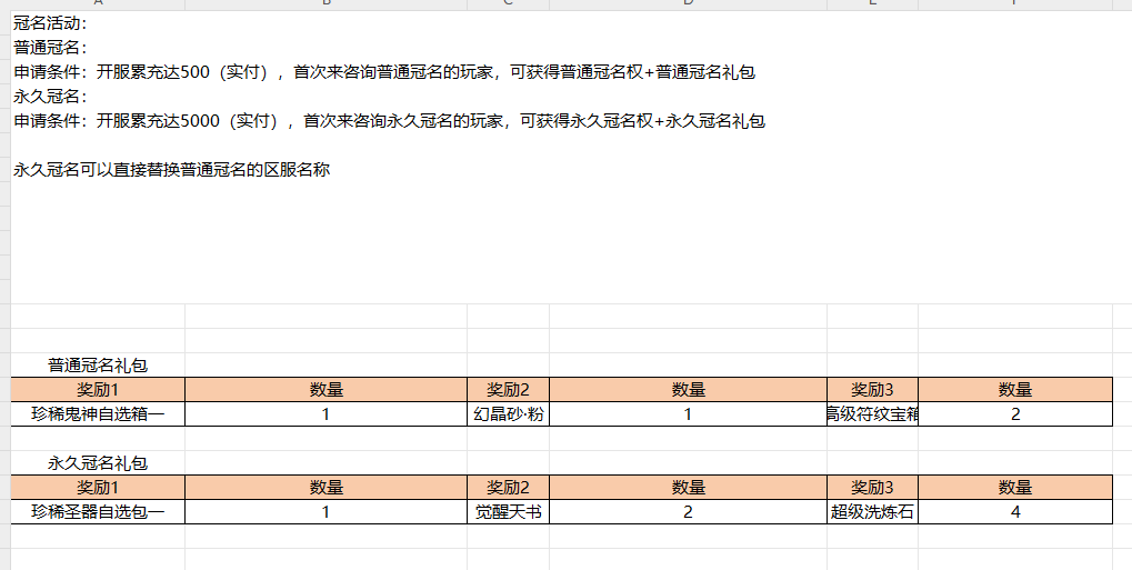 开服表