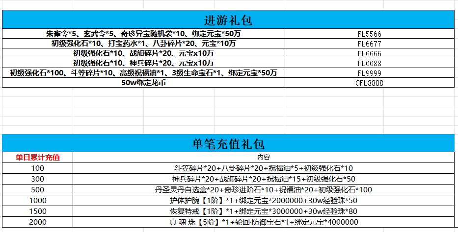 开服表