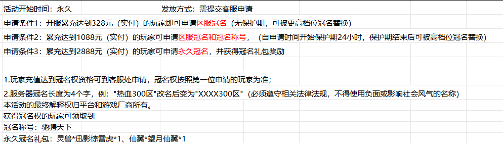 冠名+转区转游活动