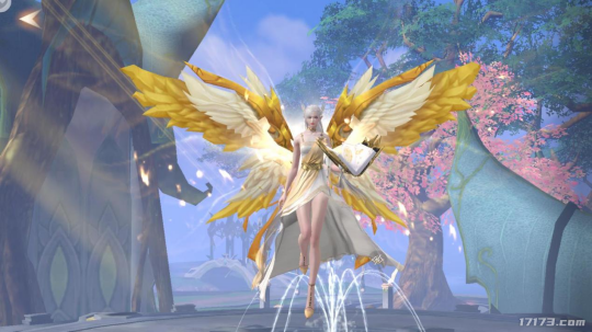 作为本次资料片中最为吸睛的新羽族职业,身为神之后裔的羽岚也与其他羽族角色一样拥有着细长优雅的身姿,如模特般动人的身材曲线搭配上闪烁着金色光芒的绸缎服饰,显露出角色不俗的地位。羽岚在游戏中的输出武器正如图上所示为“书”,手持魔法书的职业设定向来无外乎暴力法师和机制辅助,羽岚属于后者。