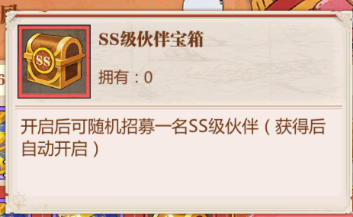 SS级伙伴宝箱:开启后可随机招募一名SS级伙伴(获得后自动开启)