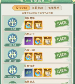 比武大会段位的奖励众多,分成不同的档次,籼米们努力往高段位冲起来!