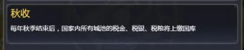 最后要说的是第三天的秋收,秋收是在秋季结束后,统计所有城池的资源,然后 在冬天分红