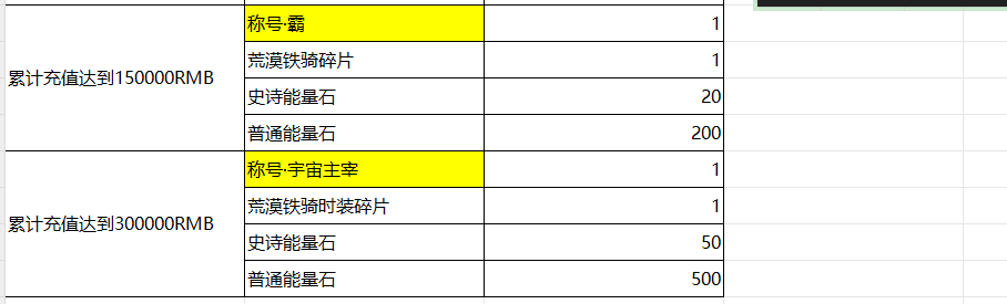 开服表