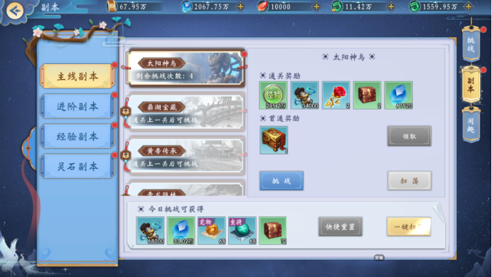 3、日常界面:日常每日有五次次数可以获取经验,可以手动完成也可以一键完成。