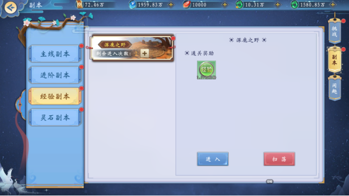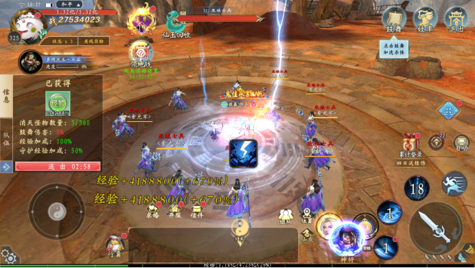 2、经验试炼:限时两分钟,进入打怪界面有鼓舞可拉满(开通至尊尊享卡点击副本中心闪电可以秒杀副本小怪),杀怪数量越多经验越多,可以最大幅度获取经验,每日初始次数2次,可以直接扫荡。