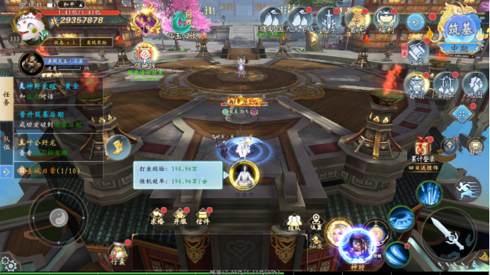 5、打坐:玩家完成日常任务之后可以进行打坐获取经验。