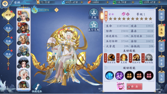 1、神将:界面内可以提升神将角色来提高自身战力。