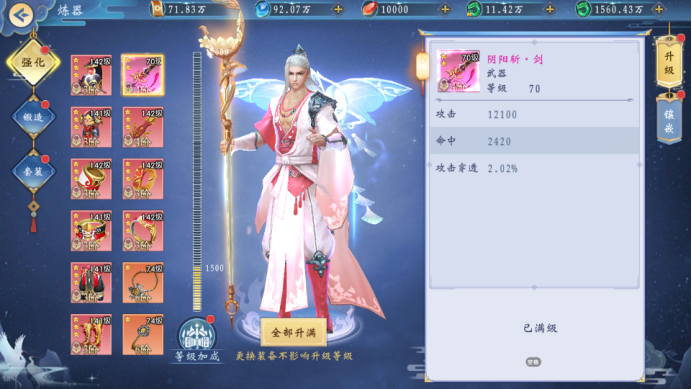 2、炼器:强化、宝石、锻造以及套装都可提升战力。