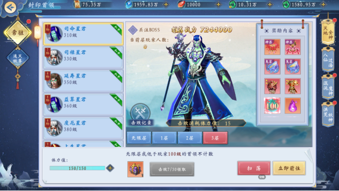 3、日常活动挑战首领BOSS来获取提升战力的道具以及锻造饰品的道具。