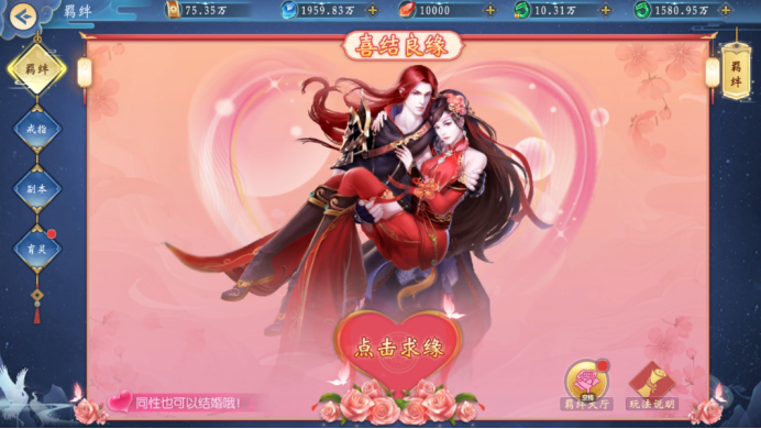 5、羁绊系统:可以和另一位玩家结为道侣开启新副本养育子嗣。