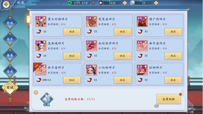 5、外观商城,可以提供道具购买心仪外观碎片,达到数量即可激活该外观。