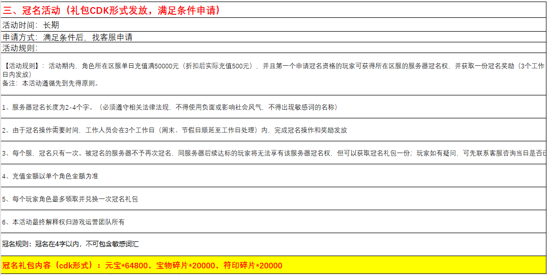 开服表