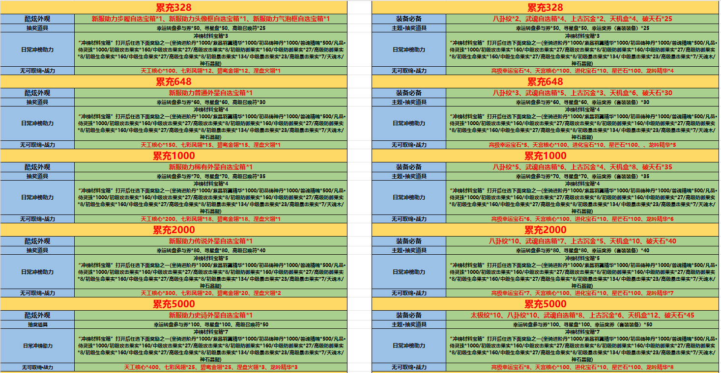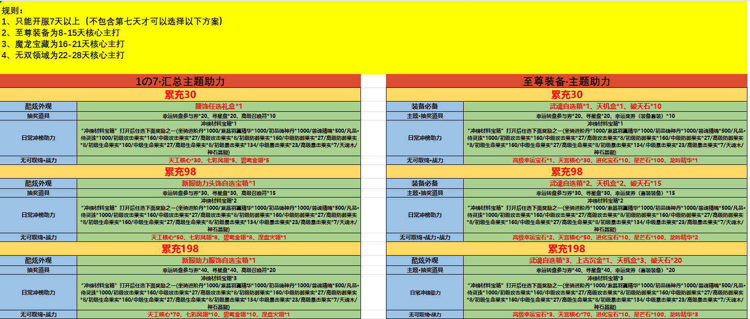 开服表
