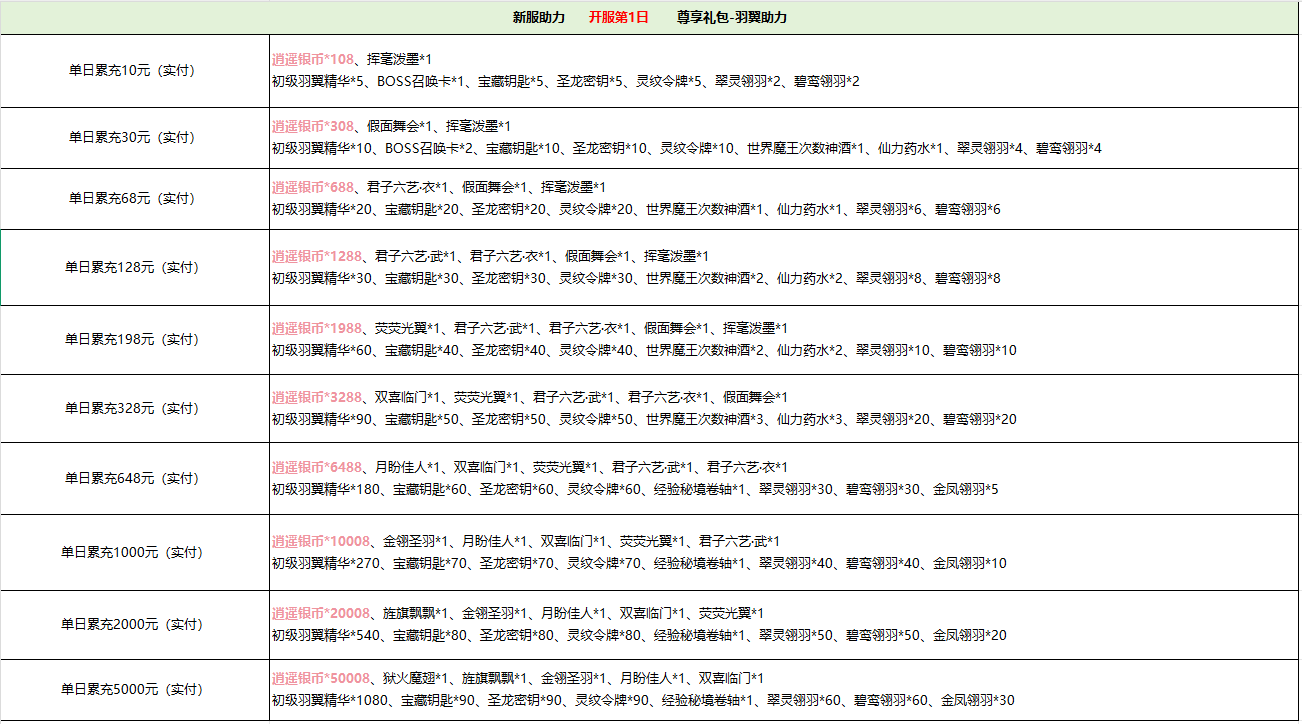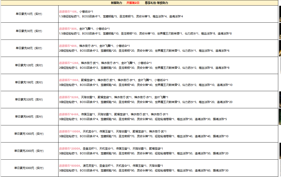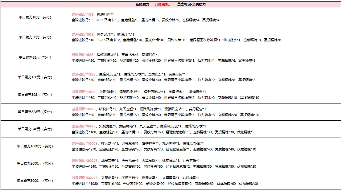 逍遥蜀山(太虚服)单日累充