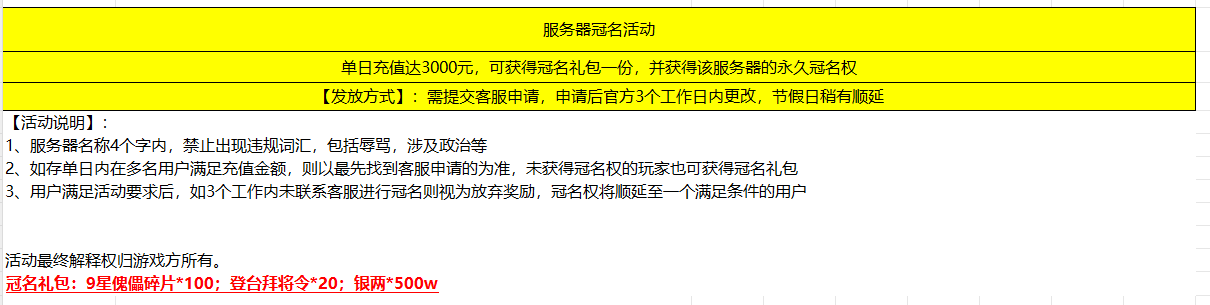 开服表
