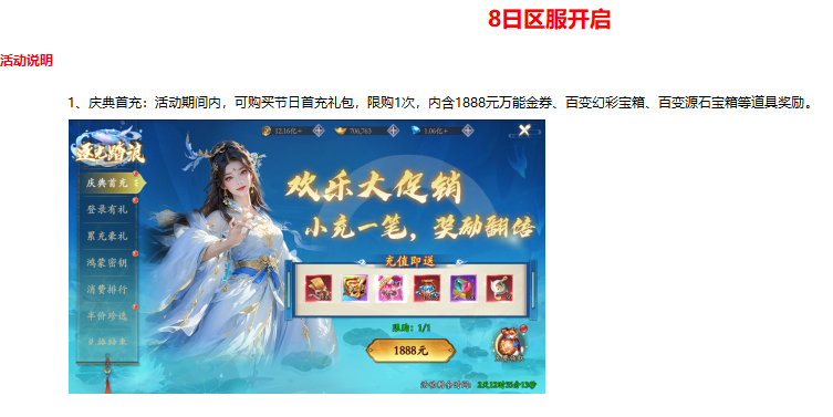 8、登录有礼:活动期间内,连续登录3天,每天可领取真金券,鸿蒙钥匙等道具。