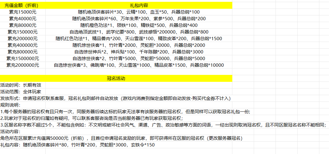 开服表