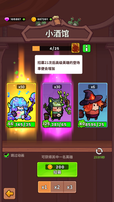 1、游戏引入了招募系统,玩家可以在小渔村村庄酒馆进行招募英雄。2、玩家在小酒馆中有机会招募到稀有、史诗、及强大测传说级英雄。这些角色将为玩家的冒险之旅提供强大的支持。