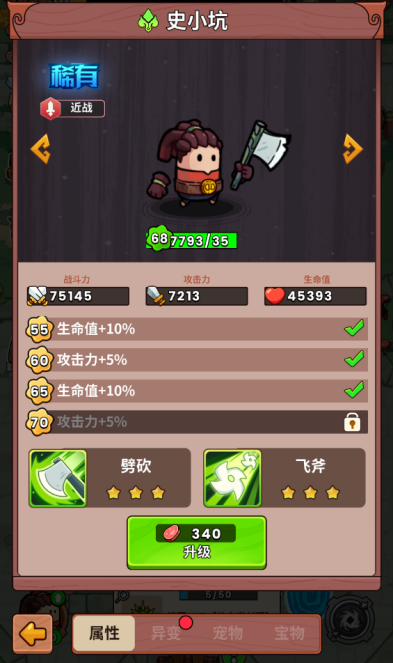 属性:木属性英雄,升级英雄提升英雄木属性伤害和生命值