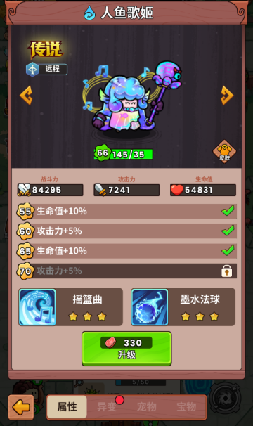 属性:水属性英雄,升级英雄提升英雄水属性伤害和生命值