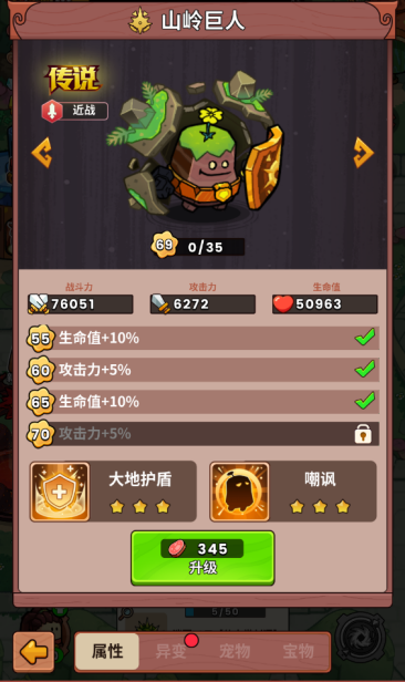 属性:土属性英雄,升级英雄提升所有土属性伤害和生命值