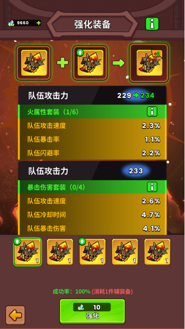 5、装备可以强化,强化需要消耗1件与主装备等级、品质相同的辅装备。强化成功时,会随机增强主属性和1条随机副属性。当强化等级达到+1、+5、+10、+15、+20时,会额外获得1条属性。请注意,强化等级达到一定程度后存在失败概率,失败时将损失辅装备。