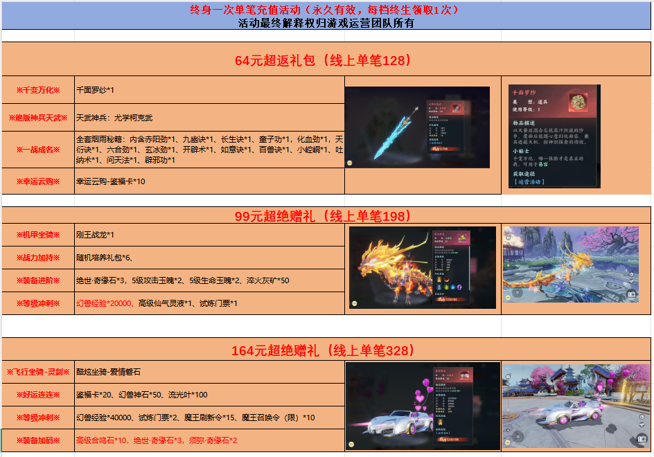 烟雨逍遥 超返礼包(终身一次)