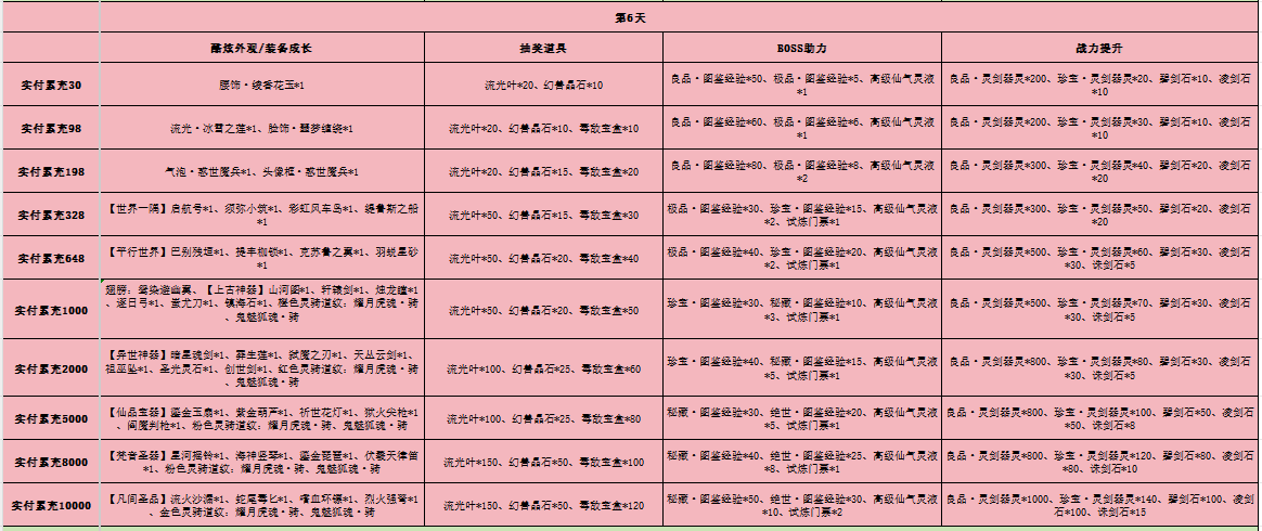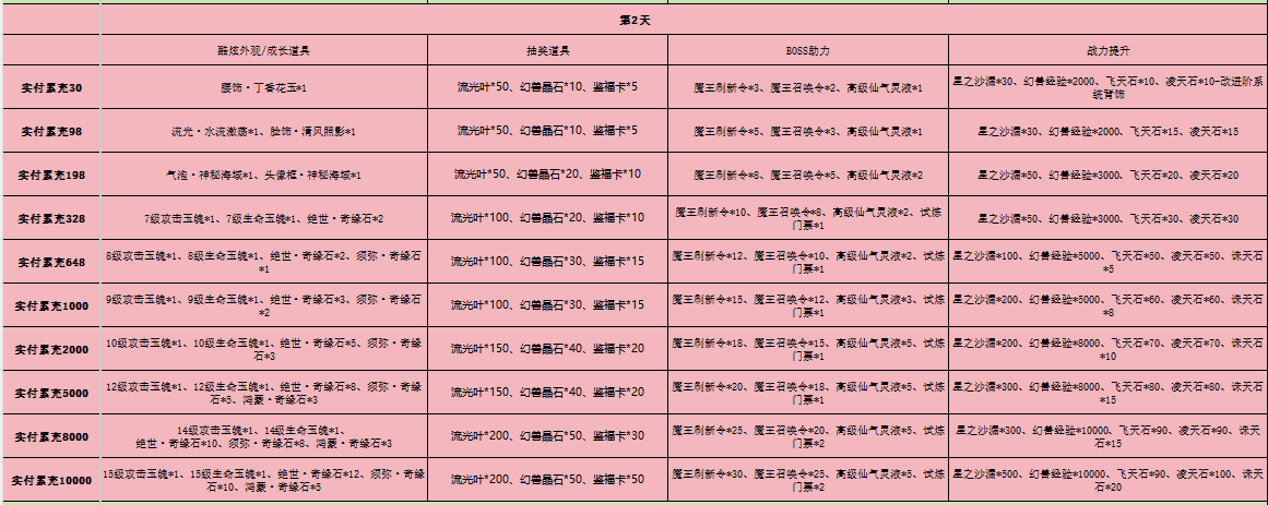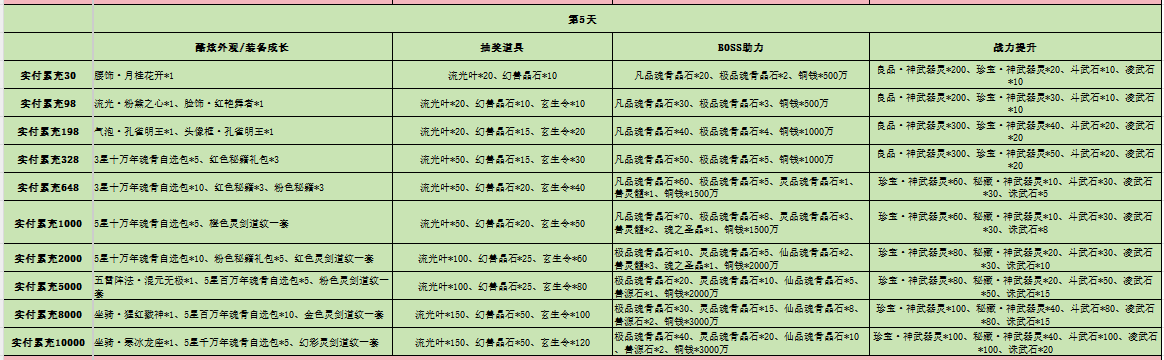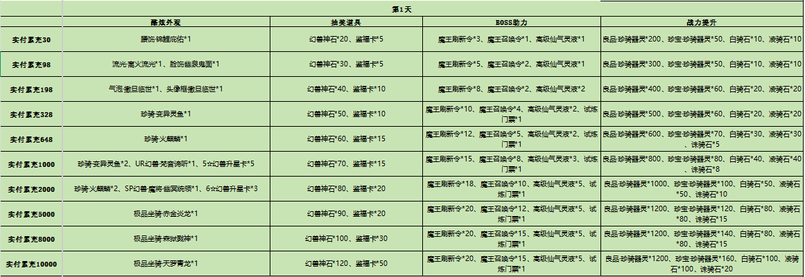 1、开区7天内,单日累充金额达到对应档位后,即可领取对应礼包奖励。