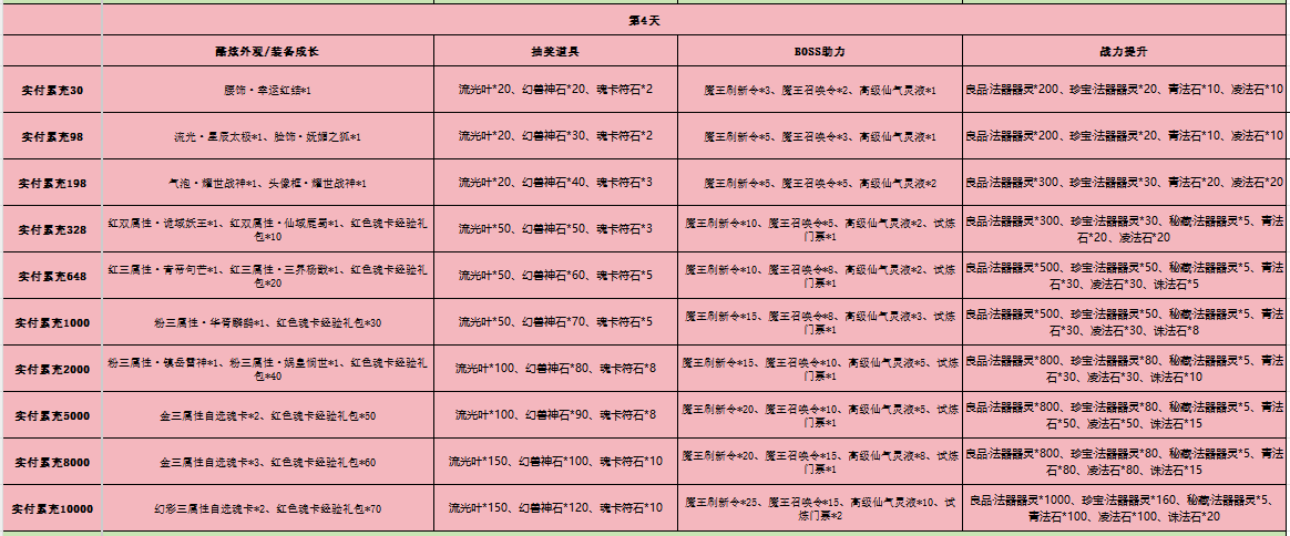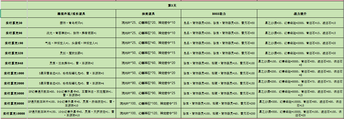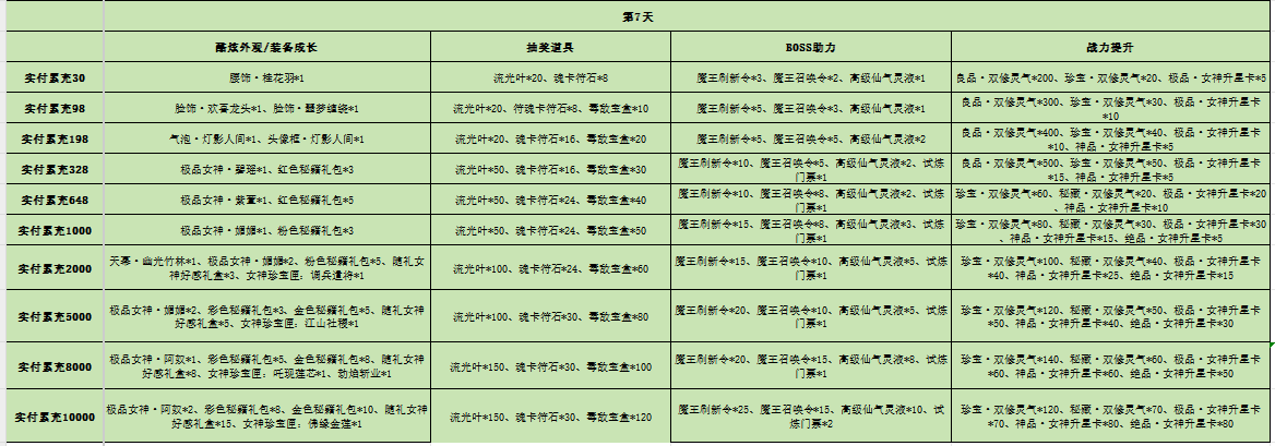 3、开服7天后,单日累充可以选择1-7天任意一天的奖励