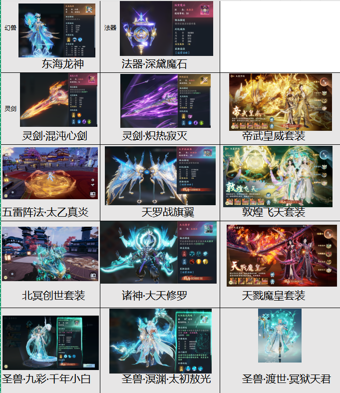 | 永久累计充值20000元 | 圣兽·九彩·千年小白*1、绝世·广寒月主*1、彩色秘籍礼包*3、金色秘籍礼包*5、粉色秘籍礼包*10、红色秘籍礼包*60、神·法器真砂*10、佳·法器真砂*30、绝·法器真砂*50、秘藏·背饰器灵*70、秘藏·法器器灵*70、秘藏·神武器灵*70、珍宝·珍骑器灵*250、珍宝·灵剑器灵*250 |