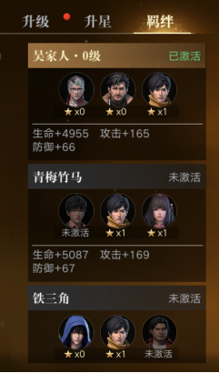 在点开伙伴页面的羁绊选项中,可以看到对应角色的羁绊组合,羁绊是该角色在原著中的人际关系,当一组羁绊中的所有角色都助战后,玩家获得额外的羁绊加成,凑齐这些原著中的组合,让自己变得更强吧!
