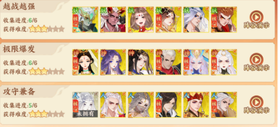 当神君收集完毕【第一阶段】阵容后就可以浏览到【第二阶段】的阵容啦!
