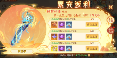 在游戏第二周将会开启为期6日的返利活动,包括每日返利和活动期间总返利,神君参与活动有机会获得【稀有神器】和【资质80神灵】,还有海量召唤券和种族召唤券可以获取