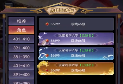 | 4、冠名特权: | 被冠名的区服在选服列表中需特殊显示(设计参考原型图1) |