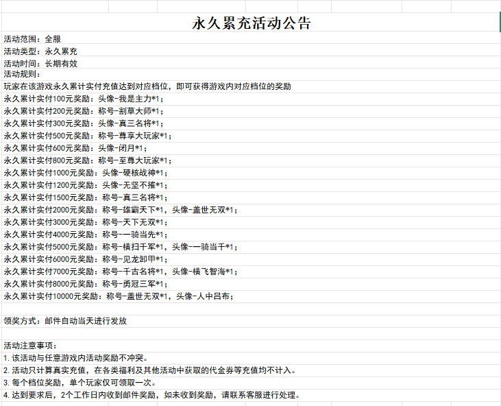 真·三国无双霸(0.1折)永久累充活动