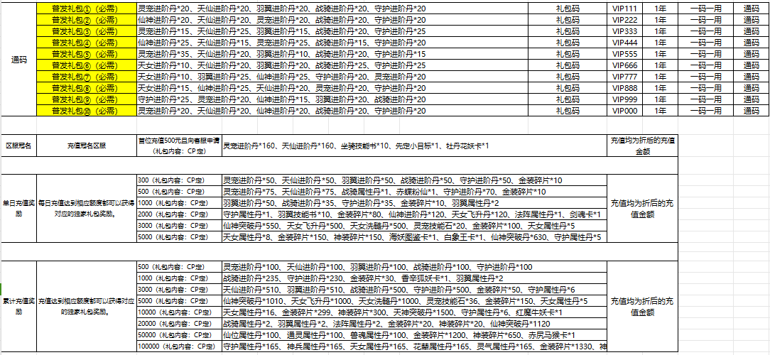 开服表