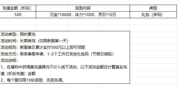 开服表