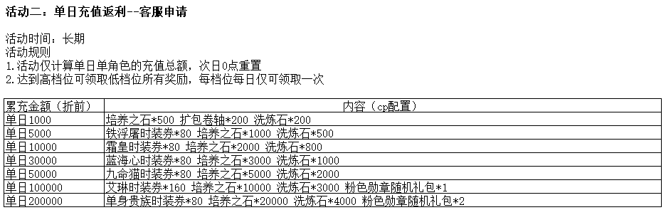 单日充值返利--客服申请