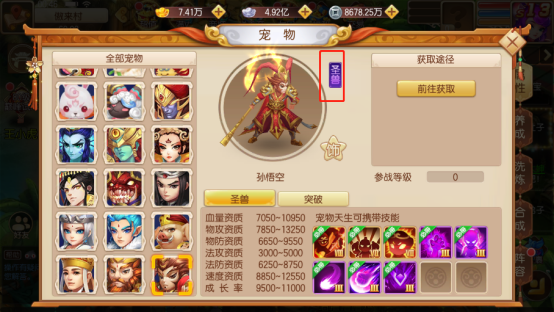 成长:成长越高属性越高,成长培养有限制,所以务必选择初始成长高的宠物培养,避免浪费资源;