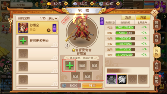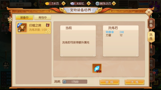 装备强化:宠物装备强化和角色装备强化比较类似,不多做说明;