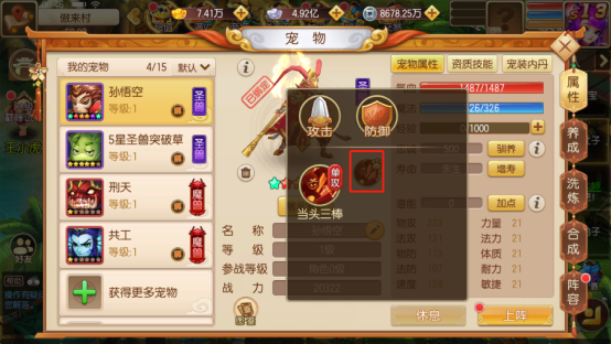 属性:无论资质、成长、加点最终都是为宠物基础属性服务的,部分宠物被动技能也会对基础属性加成,还有宠物装备也会增加宠物基础属性。此外,服用属性丹也可以增加少量宠物属性,每种属性使用上限20颗;