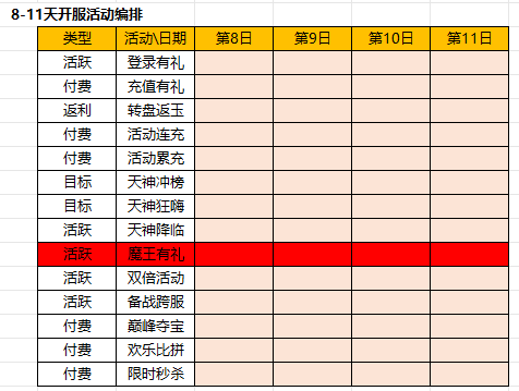 开服表