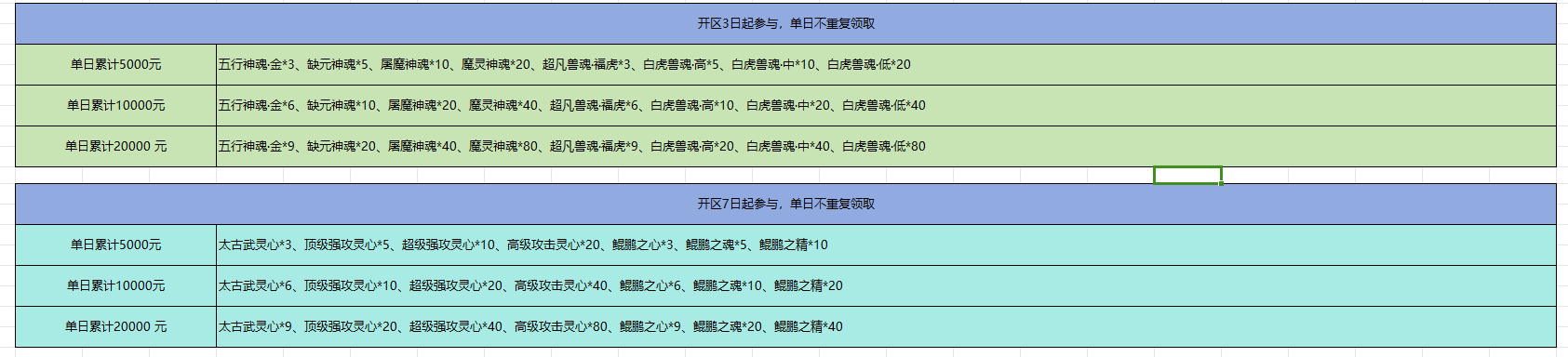开服表