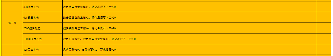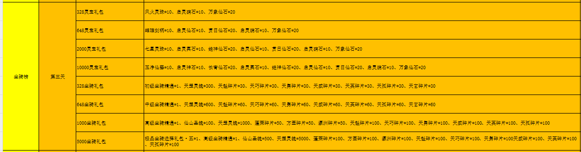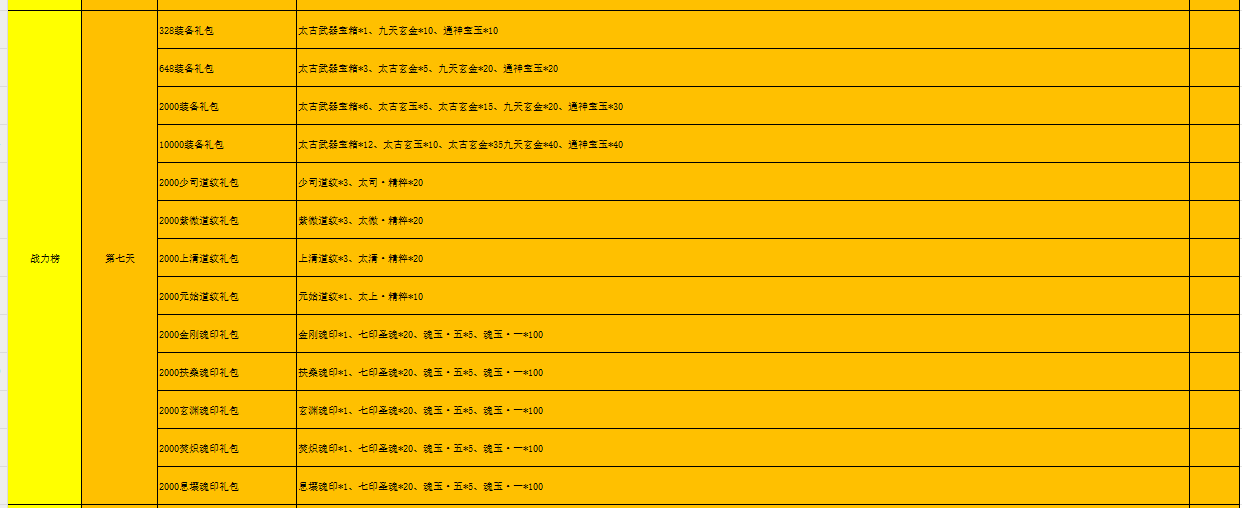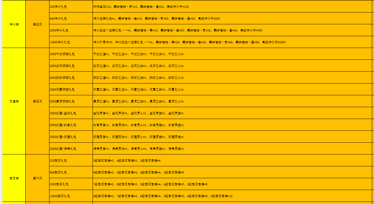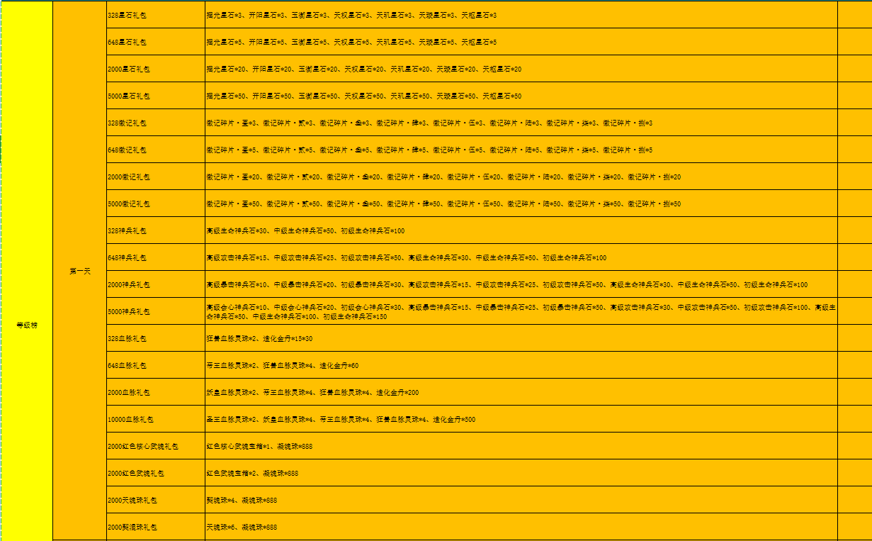 开服表