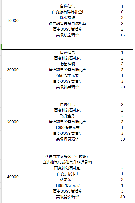 开服表