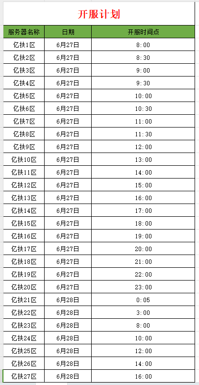 开服计划