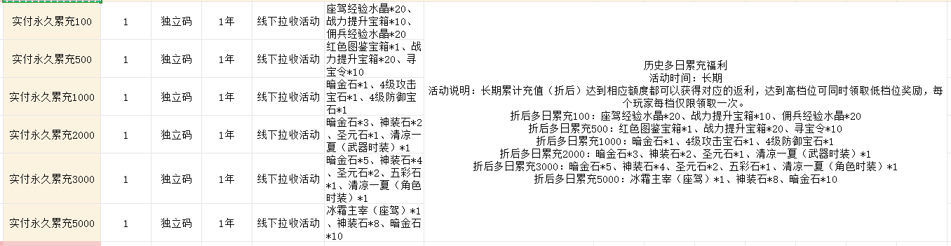 永久累充活动